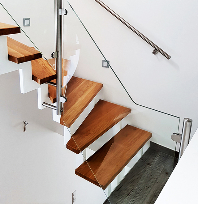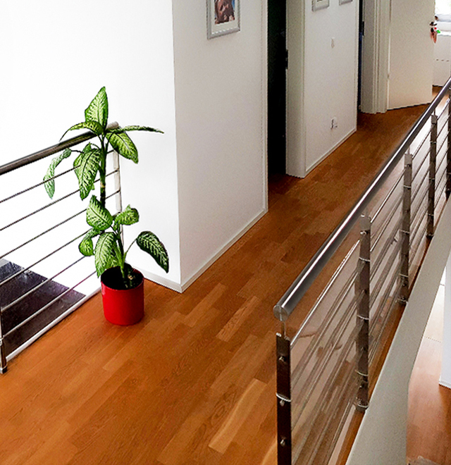 Nappenfeld eine zweigeschossige Stahlholm-Treppe mit Naturbuchenstufen. Die Treppe schmückt ein [...]