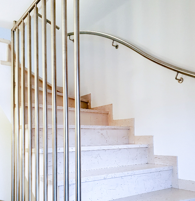 So edel kann eine Stahlbetontreppe, kombiniert mit Edelstahl und Sicherheitsglas aussehen. [...]