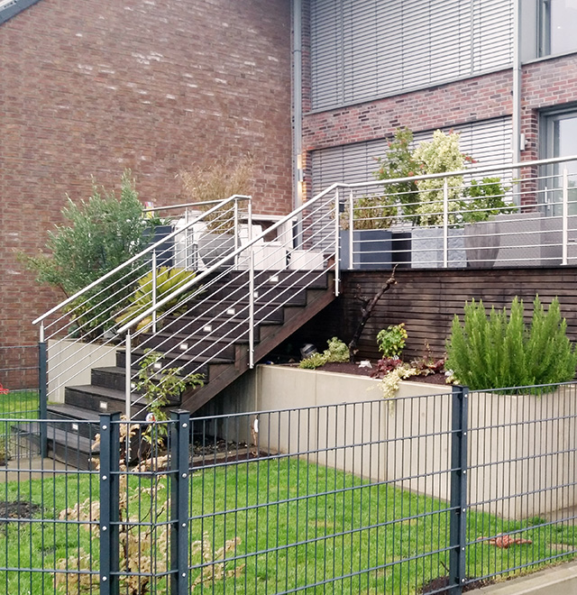 Nappenfeld realisierte in Bottrop ein ca. 10m langes Edelstahl-Geländer in Kombination mit weiß [...]