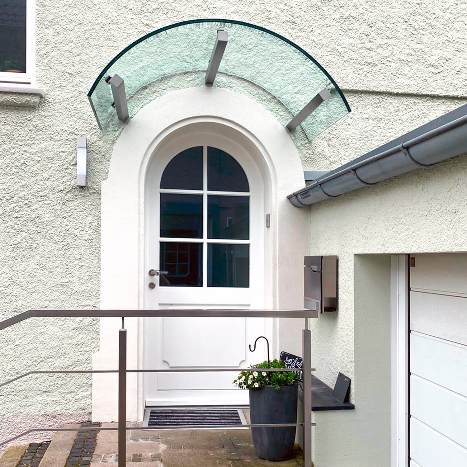 Die Bauschlosserei Nappenfeld hat ein maßgeschneidertes Edelstahl-Vordach mit Glas montiert. [...]