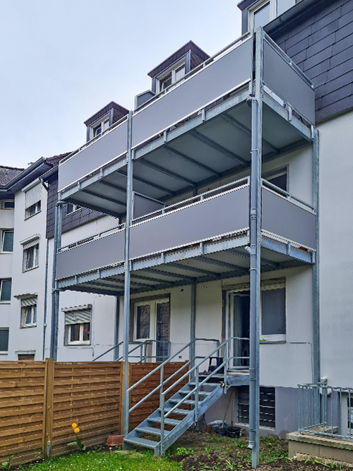 Ein neues Balkonprojekt der Edelstahlschlosserei Nappenfeld wertet ein Mehrfamilienhaus in Mülheim an der Ruhr auf. Die verzinkte Konstruktion bietet mit 6×2 Metern großzügigen Freiraum für die Mieter und steigert so nicht nur die Attraktivität der Wohnungen, sondern trägt auch zur Wertbeständigkeit der Immobilie bei. Die Profis der Bauschlosserei Nappenfeld haben das Projekt von der Planung über die Fertigung bis zur fachgerechten Montage betreut.