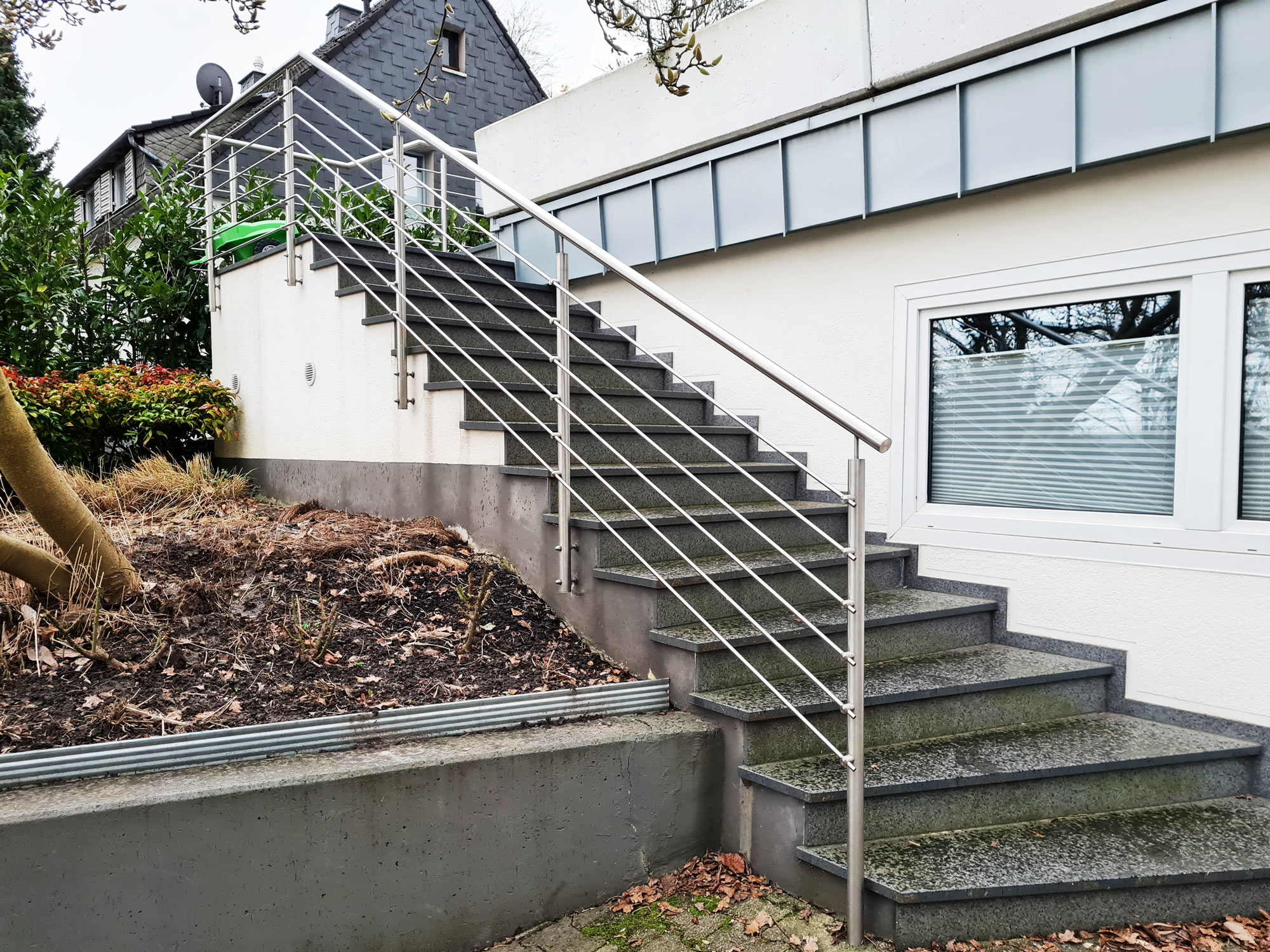 Heimspiel für die Edelstahlschlosserei Nappenfeld: In Mülheim an der Ruhr – seit drei Generationen Sitz des Familienunternehmens – haben die Profis von Nappenfeld eine Terrasse und die dazugehörige Aufgangstreppe mit einem Edelstahlgeländer aufgewertet. Die cleane Optik fügt sich hervorragend in die moderne Ästhetik der Immobilie ein und zeigt einmal mehr die Vielseitigkeit des Werkstoffs Edelstahl. Geplant, gefertigt und montiert wurde das Einzelstück wie immer in millimetergenauer Handarbeit.