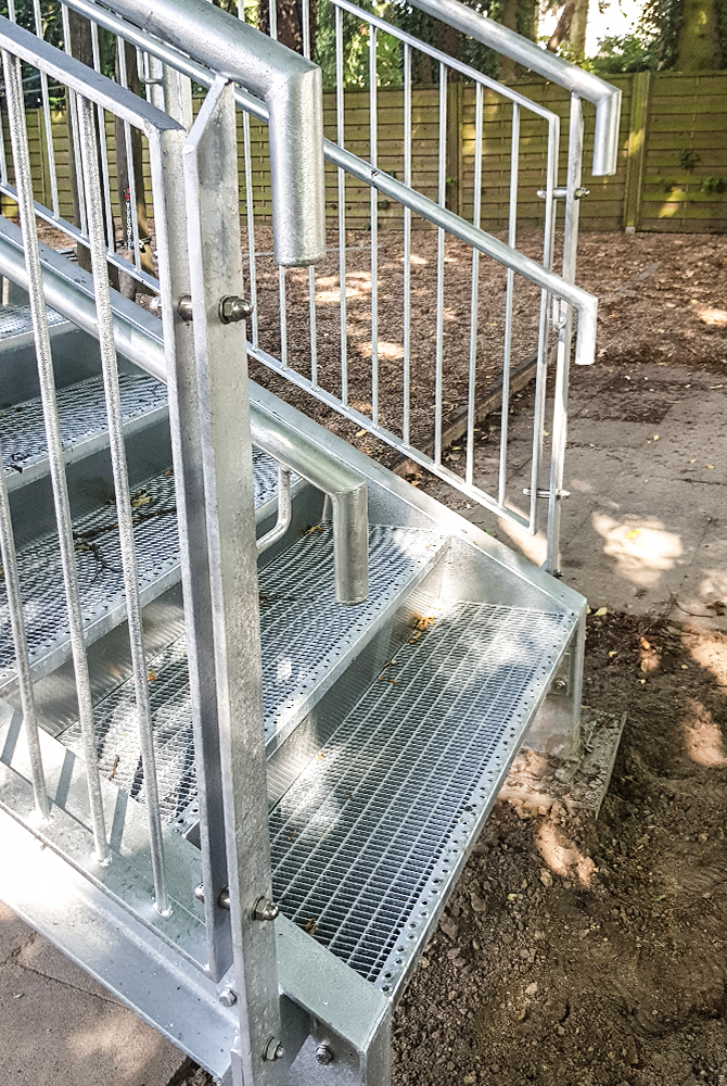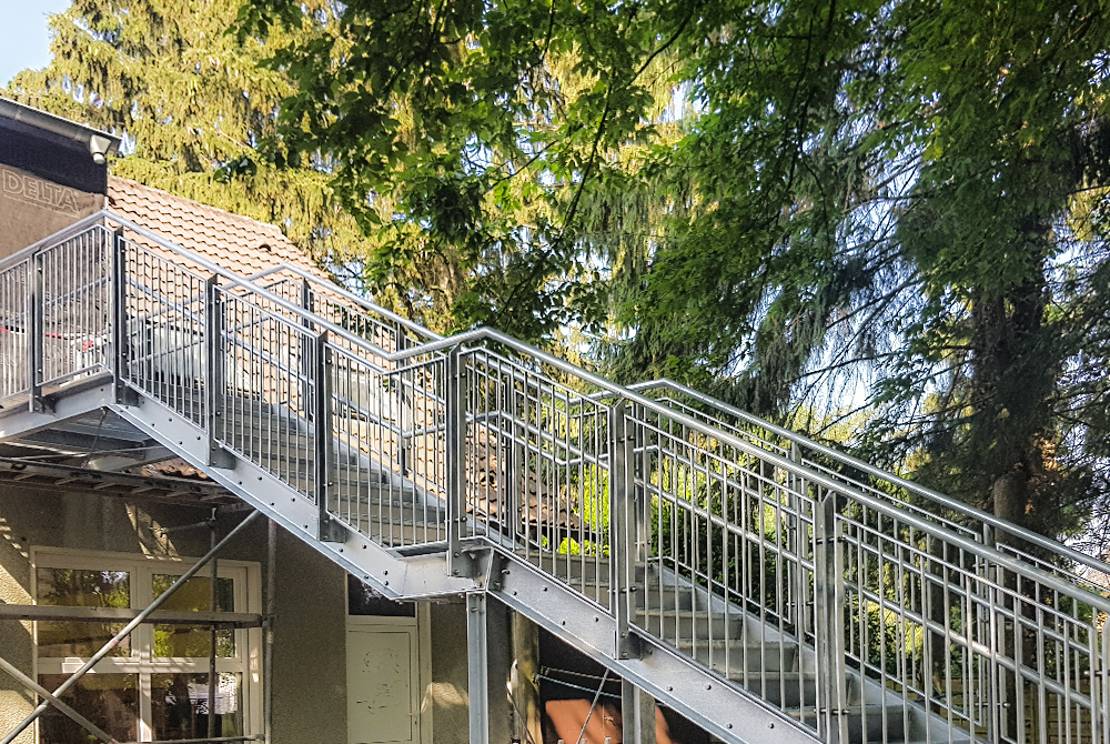 In Mülheim-Heißen realisierte Nappenfeld eine neue Treppe als Fluchtweg für eine KiTa. Kindergerecht wurde die Treppe an die KiTa-Vorschriften angepasst. Das heißt: Die Füllstäbe sind mit sehr geringen Abständen gesetzt und es gibt einen niedrigen Kinder-Handlauf.