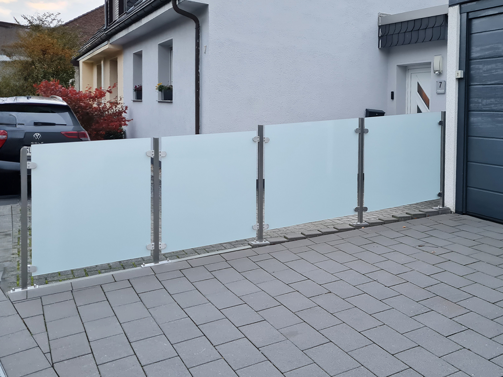 Die Edelstahlschlosserei Nappenfeld hat in Ratingen ein weiteres Projekt realisiert: eine Glas-Trennwand mit vierkantigen Edelstahlstützen. Die Trennwand aus matt-weißem Glas ist zu 80% lichtdurchlässig und sorgt für eine stilvolle Abgrenzung der Garagen-Einfahrt. Von der ersten Planung bis zur finalen Montage haben die Profis von Nappenfeld sämtliche Arbeitsschritte übernommen.