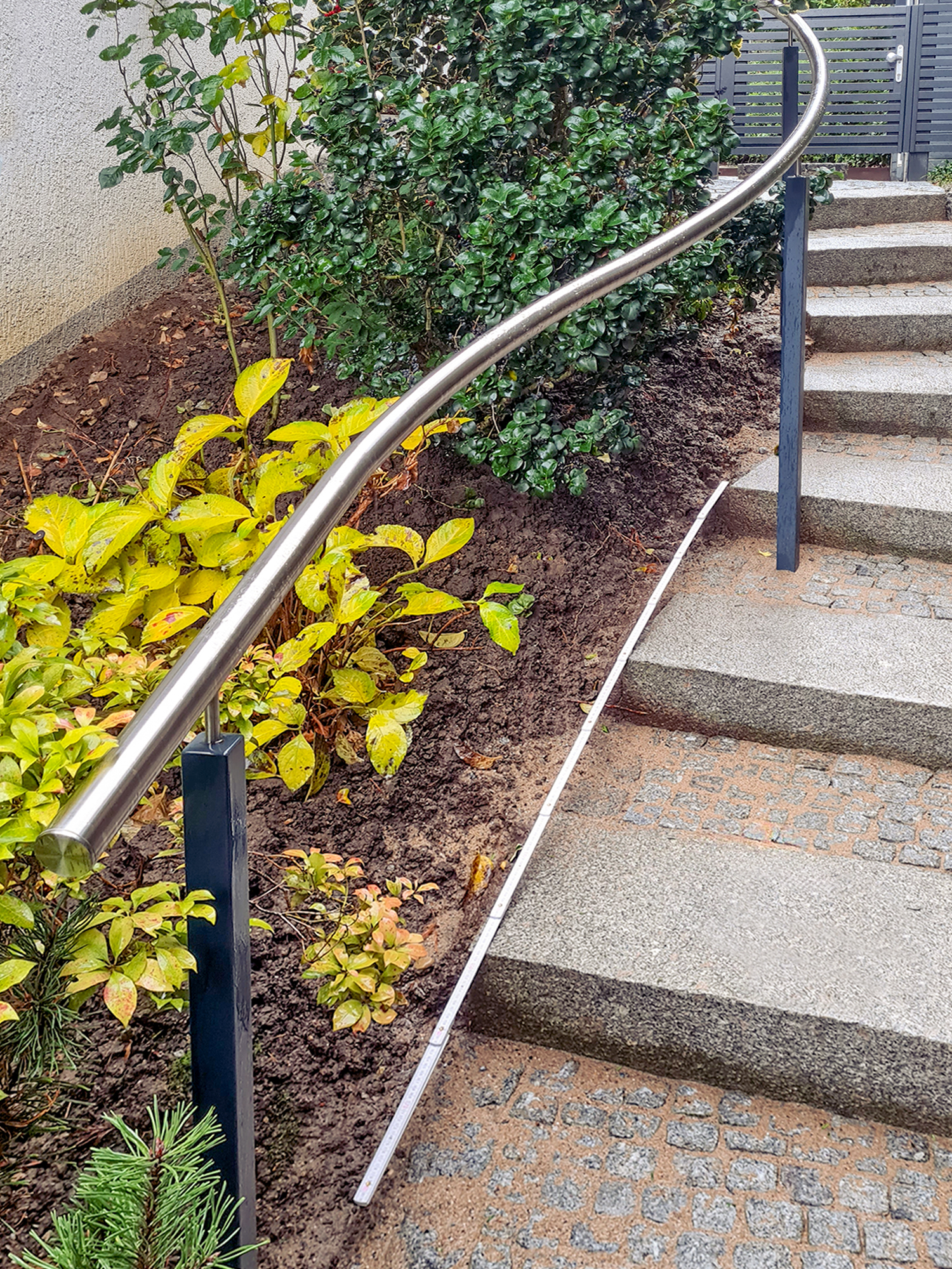 Die Edelstahlschlosserei Nappenfeld hat einen neuen Edelstahl-Handlauf mit vierkantigen Stützen installiert. Das pulverbeschichtete Material sorgt nicht nur für Langlebigkeit, sondern fügt sich auch stilvoll in das Gesamtbild ein. Das Besondere: das Geländer ist in geschwungener Form montiert worden, die sich dem Verlauf der Treppenstufen angleicht. Das gesamte Projekt haben die Profis der Edelstahlschlosserei Nappenfeld aus einer Hand geplant, gefertigt und montiert.