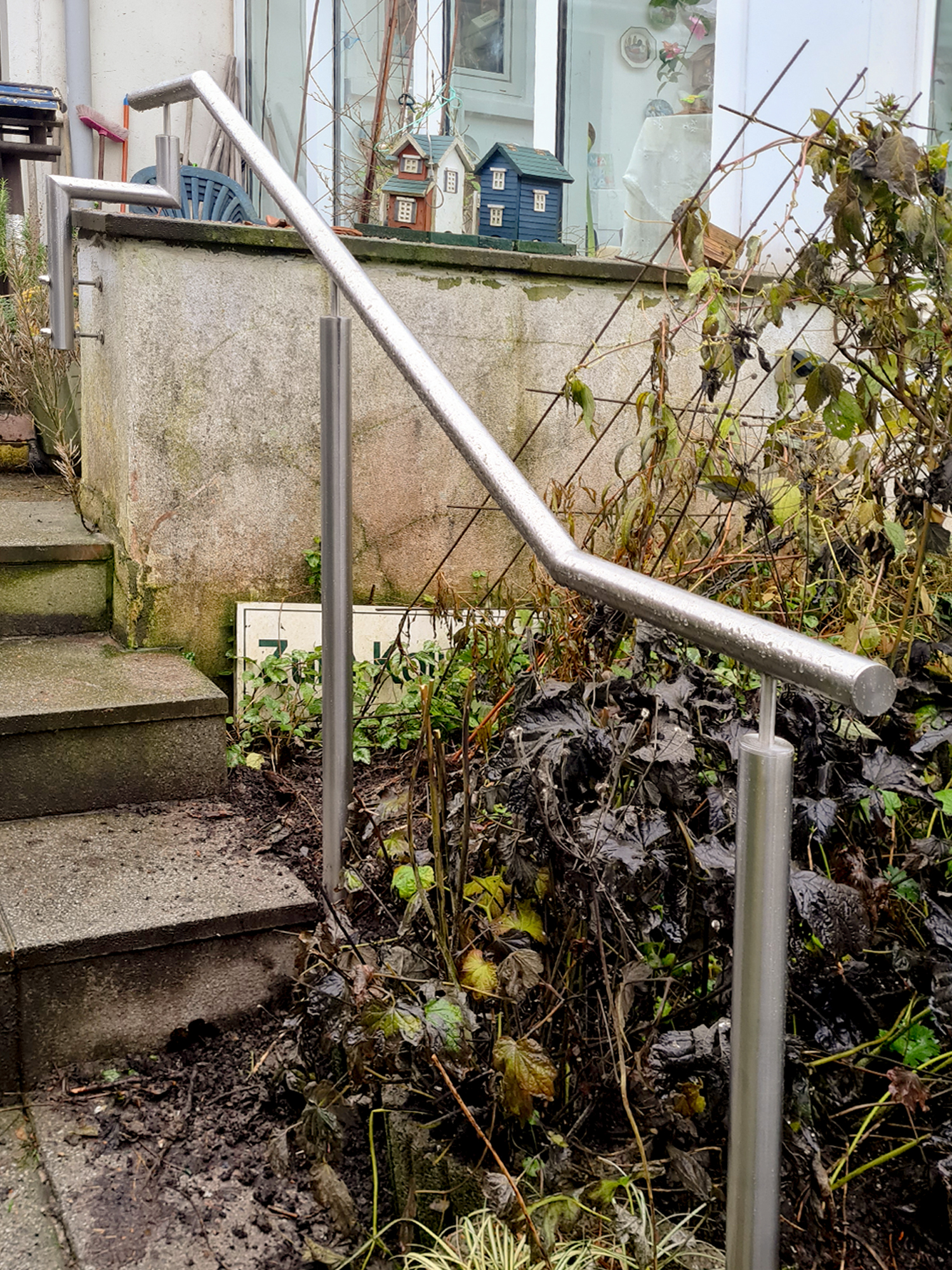 Die Bauschlosserei Nappenfeld hat ein weiteres Projekt realisiert: einen Edelstahl-Handlauf mit Stützen. Die Herausforderung: eine ungünstig liegende Steinmauer, die eine herkömmliche Montage erschwert. Der Lösungsansatz: Statt einer üblichen bodentiefen Montage haben die Profis der Edelstahlschlosserei Nappenfeld die dritte Stütze an die bestehende Mauerstruktur angepasst. Nun sind die Treppenstufen in Düsseldorf sicher begehbar.