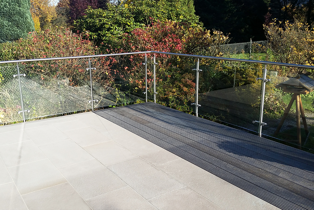 In Essen-Werden realisierte Nappenfeld für eine Terrasse ein schickes 15 m langes Edelstahlgeländer.