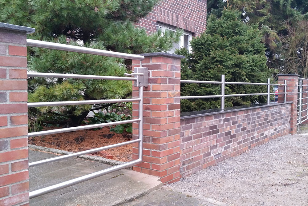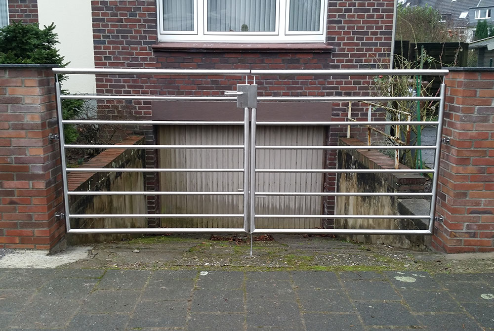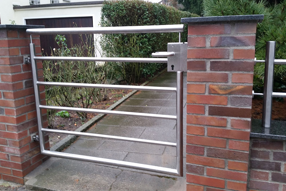 Für ein Einfamilienhaus entwarf und realisierte Nappenfeld eine große Tor- und Zaunanlage aus Edelstahl. Tore und Zäune sind freitragend und verfügen somit über ausreichend Bodenfreiheit.