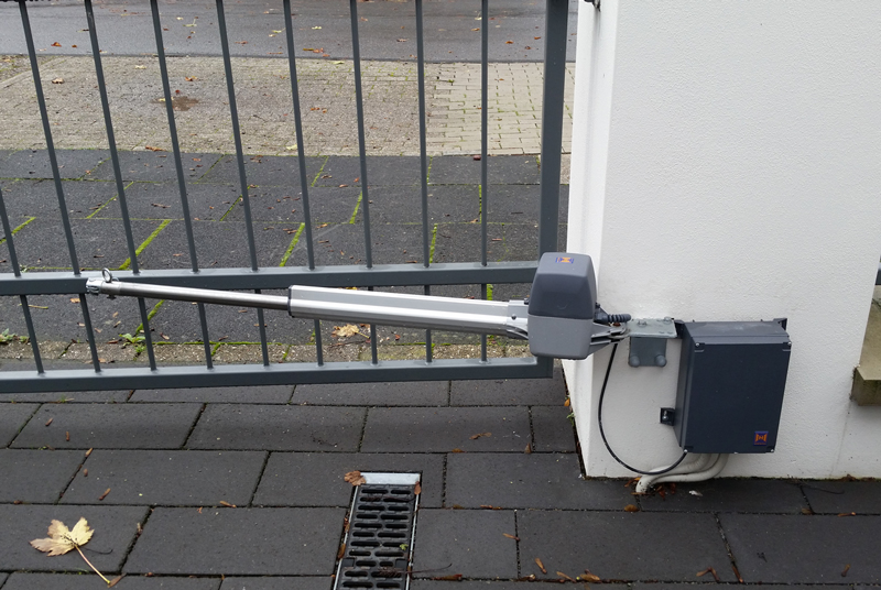 Für eine Villa im Bauhausstil hat Nappenfeld eine große Tor- und Zaunanlage entworfen und realisiert. Tore und Zäune sind verzinkt und pulverbeschichtet; ein Tor verfügt über einen elektrischen Torantrieb mit Spindelfunktion. Eine Besonderheit der aufwendigen Anlage befindet sich in den Betonsäulen. Die im Inneren eingelegten Stahlträger im Köcherfundament dienen zur Mauerstabilisierung.