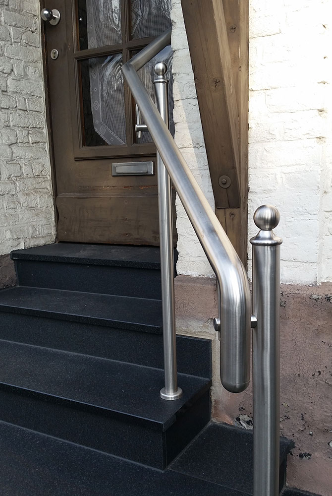 Das Treppengeländer besteht aus zwei Stützen und vorgestellten Handläufen.