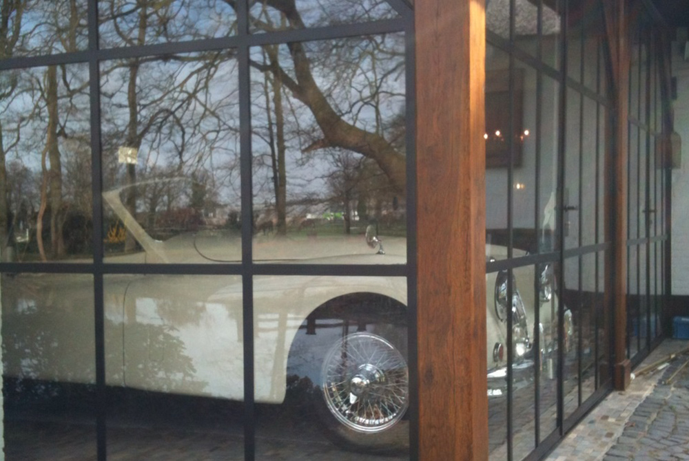 Auch Oldtimer brauchen ein warmes und sicheres Plätzchen und deshalb fertigte Nappenfeld für einen deutschen Kunden, dessen Villa in Holland steht, eine Tür-und Fensterkombination für einen schicken Oldtimer. In ein bestehendes Fachwerk wurden die Fenster, die gleichzeitig auch als große Tür dienen, von dem Kunden selbst montiert.
