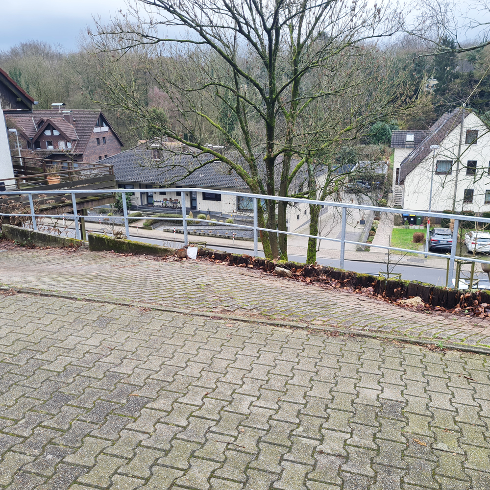Für Kunden aus Mülheim hat das Team der Edelstahlschlosserei Nappenfeld ein verzinktes Geländer montiert. Besonderheit: Die direkt angrenzende steile Hanglage. Das alte Holzgeländer war in die Jahre gekommen und bot keinen ausreichenden Schutz mehr – daher das 15 m lange Stahlgeländer, um die Sicherheit der Anwohner zu gewährleisten.